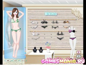 Открываем пляжный сезон. Подберем для девушки новую стильную прическу, цвет волос и цвет глаз. Сделаем ей пляжный макияж и примерим новую коллекцию модного бикини. Посредством клика мышки выбереаем следущие варианты. В первом случае-это бикини и украшения, представленные Парижским Домом Моды. Во-втором, бикини и обувь от ведущих дизайнеров Мадрида. И в-третьем, яркая коллекция бикини от немецких кутюрье. А с помощью разноцветной вкладки на фоне, Вы с легкостью можете поменять его цвет.