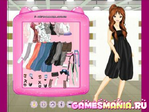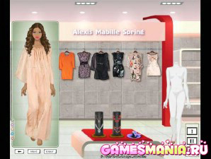 Ещё одна модель, которая ждет вашей помощи перед выходом на подиум. Подберите ей прическу, макияж и одежду. Для того, чтобы сделать макияж и прическу, нажимайте на таблички справа - Вам откроются окошки, с помощью которых вы сможете выбрать наилучшее сочетание из множества вариантов макияжа и причесок. Нажав на табличку со стрелочкой, вы переходите в комнату примерочной, где вам предложат три варианта гардероба (римские цифры 1, 2, 3)