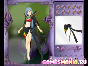 Давайте придумаем интересную сказку. Все, что нам нужно - это главный персонаж - сказочная принцесса, и конечно же наряды для перевоплощения. Кем она у Вас будет, решайте сами, то ли доброй волшебницей, то ли лесной царевной, то ли принцессой на горошине, все зависит от Вашей фантазии и воображения. Если Вы хотите сделать принцессу - эфиопку с черной кожей, то нажмите мышкой на 1. Для того, что бы просмотреть все варианты, кликните на сказочного дракона с надписью PREV. Выбрать прическу - цифра 2. 3 и 4 - это костюмы. Чтобы выбрать нимфе волшебную палочку - цифра 6. Надеть перчатки -7, 8 - выберем змею, 9 - облачим ее в плащ, 10 - подберем головной убор. Ваш персонаж готов и сказка началась.