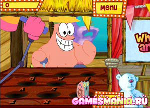 Пригласите в игру друга, чтобы весело провести время вместе со Спанчем Бобом и Патриком на ярмарке развлечений. Испытания можно проходить также в одиночку, выбрав в начале игры, одного из героев. Осмотритесь на площади - здесь стоит много шатров и в каждый из них можно заглянуть и попытаться выиграть главный приз - определенное количество баллов.